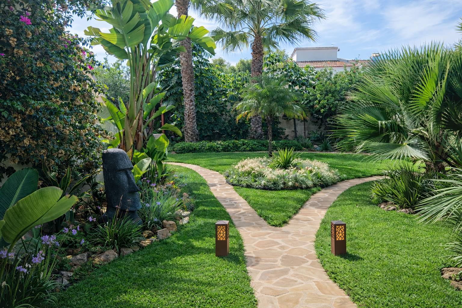 Mediterranean Garden with Ibiza-Style Outdoor Kitchen